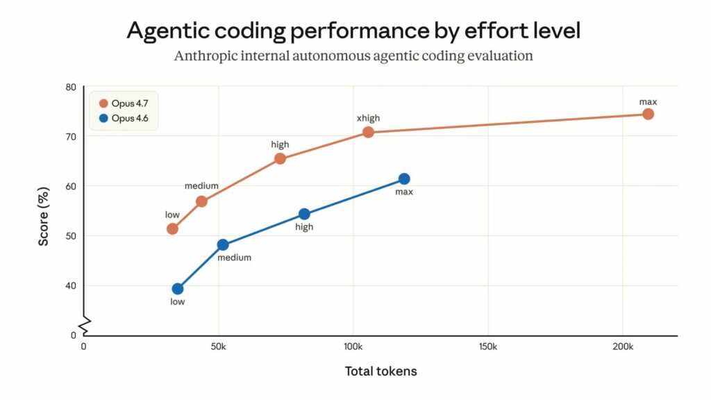 Thay vì sử dụng các giới hạn suy luận cố định, Claude Opus 4.7 giới thiệu Adaptive Thinking – cho phép AI tự động tính toán và quyết định cần suy nghĩ bao lâu trước khi trả lời. Đồng thời, người dùng có thể can thiệp bằng thông số Effort (với các mức: Low, Medium, High, Extra High, Max). Mức Extra High (xhigh) được đặc biệt khuyến nghị cho các bài toán code phức tạp để đánh đổi tốc độ lấy chất lượng suy luận. Điểm sáng nhất trong đợt cập nhật này là mức độ nỗ lực extra high (xhigh). Đây là ‘điểm ngọt’ (sweet spot) được Anthropic thiết kế riêng để xử lý các bài toán logic nặng mà không gây ra độ trễ quá lớn như mức Max.
