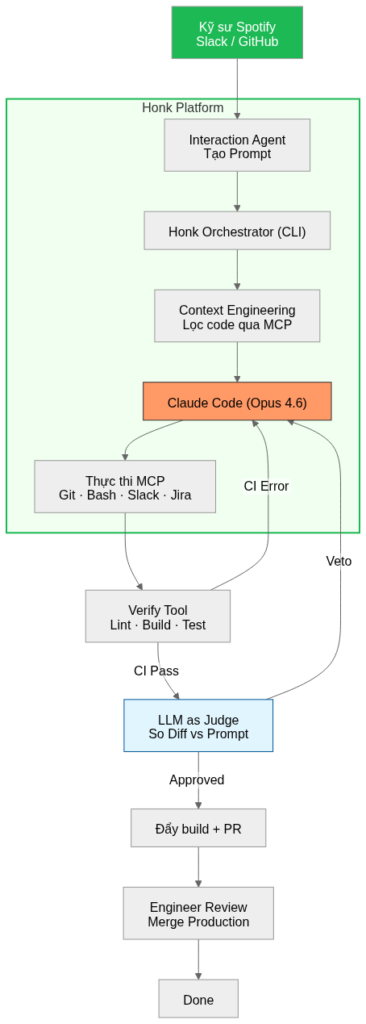 Honk không đơn thuần là một chatbot, mà là một “lớp vỏ” (harness) tích hợp sâu sức mạnh của Claude Code (từ Anthropic) vào hạ tầng của Spotify,.